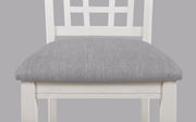 Discover practicality and style with our dining group. With a straightforward design, boasting a rich, dark tabletop contrasted with a white base and chairs, this set is perfect for everyday meals and casual gatherings. The grid-back chairs offer supportive seating, while the cushioned seats ensure comfort. With its under-table shelf, the table provides a handy spot for dining essentials.