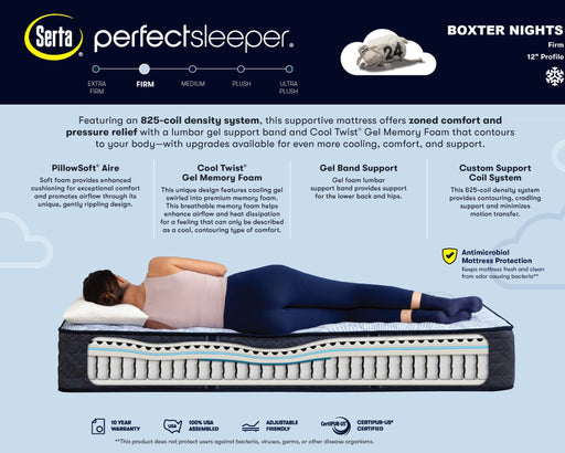 Profile: 12 Inch Profile / FirmSpecifications: Antimicrobial Mattress Protection CoolFeel™ Fabric Fiber Layer PillowSoft® Aire Serta® Support Foam...