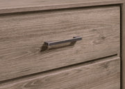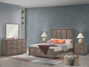 Discover the perfect blend of modern simplicity and understated elegance with this contemporary bedroom collection. Each piece, fashioned with a sleek, minimalist design and a soothing grey oak finish, offers a tranquil backdrop for your personal retreat. The collection is thoughtfully composed of a clean-lined bed frame, a streamlined dresser with ample storage, complemented by a large, practical mirror, and a nightstand that provides easy access to your nighttime essentials.