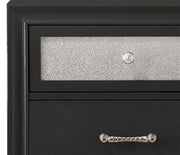Unveil the epitome of elegance with this captivating bedroom ensemble, meticulously designed for those who covet glamor and grace in their private quarters. The bed, with its lustrous, tufted headboard, radiates luxury, while the shimmering accents frame your dreams in high-end allure. Accompanying storage pieces, including the sleek dresser, towering chest, and a charming nightstand, are adorned with sparkling pulls, enhancing the set's sophisticated sparkle.