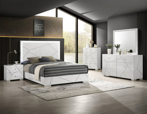 Jaymes Bedroom SetSKUs: SETB6582 This bedroom set offers a sleek and stylish update to any space, featuring a white mist finish that commands atten...