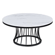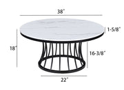 This cocktail set is a sophisticated blend of contemporary design and artistic flair, ideal for modern homes seeking a touch of elegance. The set features sleek, round tables with a faux marble tops that are both beautiful and easy to care for. Each table's base is a sculptural marvel, with a dynamic, cage-like structure that is as sturdy as it is stylish.