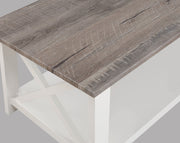 Transform your living space with this exquisite cocktail table set, featuring a perfect blend of rustic charm and contemporary elegance. Each piece is crafted with a rich, weathered gray tabletop that exudes warmth and character, contrasted beautifully by the crisp white frame for a fresh and airy look. The open shelving provides functional storage space, ideal for displaying decorative accents or keeping essentials within reach. Designed with clean lines and a timeless appeal, this set seamlessly complements any décor style, making it an inviting centerpiece for your home. Elevate your home décor with this stylish and versatile set that promises to enhance your living room’s ambiance and functionality.