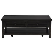 Elevate your living room with this stylish coffee table set, blending rustic charm with functional design. Crafted with solid wood legs and an engineered wood frame, each piece features a distressed java finish over pine veneer for a warm, timeless appeal. The planked wood tops and louvered drawer fronts add texture and character, while the drawers provide practical storage solutions. Perfect for creating a cohesive and inviting space, this occasional table set offers both style and convenience.