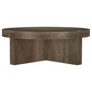 Bring a bold, sculptural presence to your living space with this modern coffee table set, crafted from solid mango wood. A deep brown finish enhances the organic beauty of the wood grain, creating a rich and sophisticated look. Both tables feature thick, intersecting slab legs and smooth, round tops that lend a cohesive feel. Whether used together or separately, this occasional table set offers a sturdy foundation for decor, drinks, or daily essentials in a stylish and inviting living room.