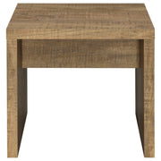 This coffee table set blends rustic charm and modern simplicity for a versatile addition to any living space. Each piece is crafted with a melamine paper finish that highlights the roughhewn texture of mango wood. Sturdy construction includes solid side supports, creating a clean, geometric look. Warm tones enhance the farmhouse aesthetic, while spacious tops offer ample room for decor, drinks, and essentials. This set effortlessly ties together your living room's welcoming ambiance.