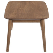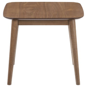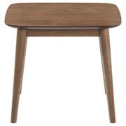 Create a subtle vintage flair with this mid-century modern three-piece occasional set, complete with a coffee table and two end tables. Keep books, table lamps and more on this collection of essential living room furniture pieces. Designed with a natural tone walnut veneer finish throughout, this collection offers a warmth to a space. Flared and tapered legs push the retro-inspired vibes, while a chamfered edge of each top offers a softer, more graceful look and feel. Arrange this coffee table and end table set in a contemporary or bohemian-inspired living room for a playful, elegant aesthetic.