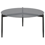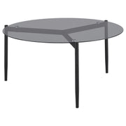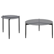 This modern coffee table set includes a sleek coffee table and matching side table, both featuring tempered smoked glass tops for lasting durability and style. Supported by sturdy black powder-coated metal bases with a sandy texture, the set exudes contemporary elegance. The minimalist round designs ensure versatile functionality and seamless integration into any living space. Perfect for creating a cohesive and modern focal point.