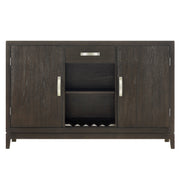Enhance your dining or living space with this sophisticated and functional storage solution. Designed with a sleek, modern aesthetic, it features a rich, dark finish that exudes elegance while complementing a variety of décor styles. The spacious cabinets provide ample room for dinnerware, glassware, or entertaining essentials, while the open shelving is perfect for displaying your favorite bottles and décor accents. A convenient drawer adds extra storage for smaller items, keeping your space organized and clutter-free. Accented with stylish metal hardware, this piece effortlessly combines practicality with timeless charm, making it the perfect addition to any home.