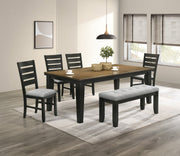- 6-Piece Set: Table + 4 Side Chairs + Bench