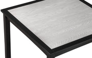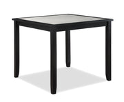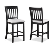 Introducing a modern counter-height dining set with a touch of classic charm. Featuring a deep black finish, complemented by a contrasting light table top inset, this ensemble offers both comfort and straightforward style. The vertical slats on the chairs provide a subtle design detail, making it a versatile choice for various dining spaces. Durable, stylish, and functional, it's the perfect addition for everyday meals or special occasions.