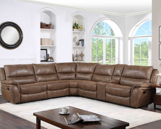 PFCComfort, convenience and style blend beautifully in the six-piece Lehi Sectional. Covered in a warm brindle-colored breathable leatherette, the Leh...