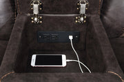 This reclining sofa set combines movie-night function with everyday comfort. Supple leatherette and contrast stitching frame pocket-coil seats topped with memory foam for supportive ease. Manual reclining mechanisms operate smoothly, with a wall-hugger design on the sofa to save floor space. A drop-down center table adds a pop-up power hub with USB charging and stainless steel cup holders, while the loveseat’s console brings lift-top storage, power, and cup holders to keep essentials close.