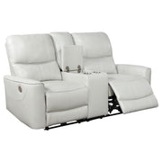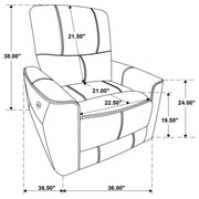 Contemporary elegance plays out in a clean, modern design as the three-piece power sofa set delivers beauty and comfort to a space reserved for easy entertaining and relaxing. Saddle brown leatherette upholstery covers wood framing to provide a sturdy build, embellished with plump foam filled in tall, attached back cushions and supportive seat cushions. Embrace subtle tufting on this power sofa, loveseat, and recliner set creating customized body positioning accessible at the touch of buttons on switch panels with convenient USB ports. Keep beverages within reach and store essentials in a center-mounted loveseat flip-top console and panel. This power set is all that's needed for a relaxing day or evening.