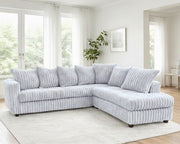 Thick channel soft corduroy sectional with pillows as displayed.